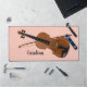 Violin and Bow Strings Musical Instrument Design Desk Mat with customisable text and background colour.