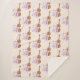 A patterned sherpa blanket with an elegant girly design. Illustrated with a watercolor image of a wooden violin, some pink ballet slippers resting against it and decorated with flowers and butterflies. Set on a peach pink coloured background.