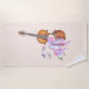 Beach towel with a soft feminine design. Illustrated with a watercolor image of a wooden violin, some pink ballet slippers resting against it and decorated with flowers and butterflies. Set on a peach pink coloured background.