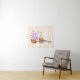 A tapestry with a soft feminine design. Illustrated with a watercolor image of a wooden violin, some pink ballet slippers resting against it and decorated with flowers and butterflies. Set on a peach pink coloured background.