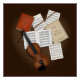 This classical music poster shows a charming scene with a violin and bow amid slightly messy music books and scores. The books are modelled after books that I play from regularly so they will look pleasingly familiar to classical musicians.