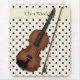 This design features a trompe l'oeil violon (or viola) with a bow on top of an ivory mouse pad with black polka dots. Your name appears on a yellow ribbon under the violin.