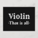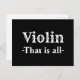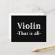 A funny Violin slogan design in white ink on dark background that says "Violin - That Is All".
