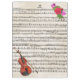 The violin image in one corner of the design, contrasts with the vintage sheet music in the background. In the opposite corner, a bouquet of roses in various shades of pink, adds another vintage style touch to the design.
