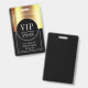 Template metallic gold and black VIP all access Event Badge. Replace with your own event name and date.Elegant luxe glam style.