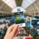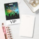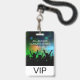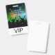 Concerts and large events all access VIP pass badge template to customise featuring a background of crowd of concert goers and coloured lights with white text overlay. Customise for VIPs, staff, press or other uses, Add other event information to the reverse side of the badge in white lettering on black.