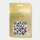 A minimalist modern design with elegant font for custom name and event information. Classic black font with your details on a chic brushed gold metallic look background. The name badge can be customised with your name, contact information and social media handles. The QR code can be customised to direct to your website.