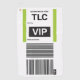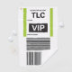 Styled as an international airline baggage-tag label with VIP status motif, plus your own choice of destination airport three-letter code, flight number, and passenger name.