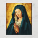 The plain and dark background contrasts with the Virgin's radiant bowed head and the white headdress covering it, and her hands are gently closed together