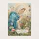 Remember your loved ones in prayer with this beautiful illustration of the Blessed Virgin Mary praying amongst the flowers.