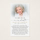 These elegant memorial prayer cards feature a serene image of the Virgin Mary paired with a softly faded photo of your loved one and the comforting sentiment Forever in Our Hearts. A gentle gold cross symbol and an editable "The Lord’s Prayer" offer a quiet expression of faith and reflection, while the soft neutral tones create a peaceful, reverent design. Thoughtfully created for a funeral, memorial service or Celebration of Life, these prayer cards provide family and friends with a meaningful keepsake honoring a life remembered with love, devotion and grace. Its small and portable size of 3.5x2" (wallet-sized) makes it convenient to carry with you as a reminder of their life and spirit. Personalization makes each card unique.