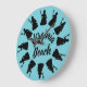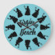 Clock design features an original marker illustration of a silhouetted Neptune statue on the boardwalk in Virginia Beach, VA, on a blue background. Just personalise for a fun beach house, bedroom, or bathroom decoration.