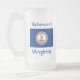 This mug features the Virginian flag plus city and state names on one side and a map of Virginia on the other.