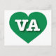 This postcard features an eco-friendly green heart containing the bold, white, upper case letters VA, the official abbreviation for Virginia, the old dominion state. The reverse side of the postcard is blank, awaiting your customised text or handwritten sentiments.