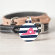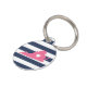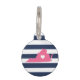Let your furry friend show some home state pride with this cute Virginia pet ID tag. Design features a white silhouette map of the state of Virginia in pink with a white heart inside, on a preppy navy blue and white stripe background. Add your pet's name and contact information to the back in white lettering on a pink background.