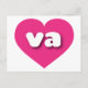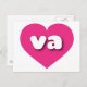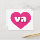 This postcard features a vibrant hot pink heart containing the bold, white, rounded lower case letters va, a playful abbreviation for Virginia, the Old Dominion State. The reverse side of the postcard is blank, awaiting your customised text or handwritten sentiments.