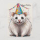 This is an AI generated image. I wanted to make a Virginia Opossum birthday design. I wanted a cowboy hat birthday hat instead of a cone birthday hat but, it came out with a cone birthday hat that had a one on it.