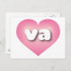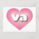 This postcard features a shapely and cool pink heart with a white-washed centre containing the bold, white, rounded lower case letters va, a playful abbreviation for Virginia, the old dominion state. The reverse side of the card is blank, awaiting your handwritten sentiments or customised text.