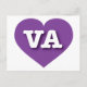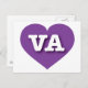 This postcard features a vibrant purple heart containing the bold, white, upper case letters VA, the official abbreviation for Virginia, the old dominion state. The reverse side of the postcard is blank, awaiting your handwritten sentiments or customised text.