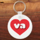 This keychain features a vibrant red heart containing the bold, white, rounded lower case letters va, a playful abbreviation for Virginia, the old dominion state.