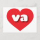 This postcard features a vibrant red heart containing the bold, white, rounded lower case letters va, a playful abbreviation for the state of Virginia, the old dominion state.