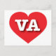 This postcard features a vibrant red heart containing the bold, white, upper case letters VA, the official abbreviation for Virginia, the Old Dominion state. The reverse side of the postcard is blank, awaiting your customised text or handwritten sentiments.