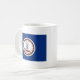 This mug design features the Virginian flag on one side and a map of Virginia on the other.
