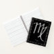 Stylised hammered silver Virgo astrology zodiac birthday symbol in a hand drawn silver fine double line frame. A hardcover or softcover notebook with your choice of inside pages. Choose from sketchbook, bullet journal, checklist, graph paper, recipe book, or lines in various widths and colours. Customisable. Aquarius text in a fine script on the front cover can be personalised, text can also be added on the back.