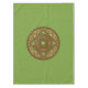 This Virgo themed mandala depicts a peridot stone surrounded by the symbol for the sign, the constellation, and the alchemical symbol for Earth among filigree and weaves.