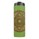 This mandala was designed for the zodiac sign, Virgo, depicting a peridot stone in the centre surrounded by elements representing the sign, such as the symbol for the sign, the constellation, and the alchemical symbol for Earth, as well as filigree vines and weaves wrapping it all into a solid image in shades of light green, copper, and brown.