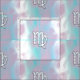 A Virgo Zodiac Sign on a soft stylish mother of pearl nacre pink and blue print decor background. A modern fresh design for a great custom gift idea.