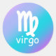 A set of round stickers featuring the astrology symbol for Virgo over a blue and purple gradient background. For someone whose birthday is between August 23 and September 22.
