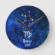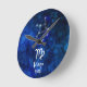 Virgo Zodiac Constellation Blue Galaxy Monogram Round Clock
