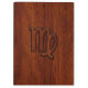 A modern Virgo Zodiac Sign on a mahogany like print background. A classic rich style design for a great custom gift idea.