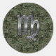 Virgo Zodiac Sign on Green Digital Camo Classic Round Sticker