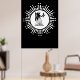 Virgo Zodiac Symbol with Stars & Radiant Sunburst Poster