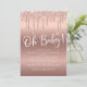 Celebrate the modern mother-to-be from a long distance with a virtual online baby shower. This elegant and luxurious gender-neutral baby shower invitation features rose gold faux glitter dripping from the top and "Oh Baby!" in a stylish white script underneath against a rose gold background. You can easily personalise with the online shower details, including an online access link, registry information, where to send cards and gifts or the option to open online and send later, and where to get more information.
