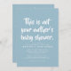 Modern times call for a modern baby shower invitation. If you're taking the party online due to social distancing, this is a perfect invitation for you. The bold playful text reads "This is not your mother's baby shower" and the party details below include room for online social meeting information, registry, shipping info and more along with the party details. The back features a coordinating playful dot pattern. The soft grey blue colour is default, but it can be changed by clicking "customise further." Great for co-ed showers, adoption showers and two dad or two mum couple showers too - and anyone who appreciates your sense of humour and wit!