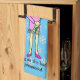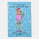 Funny cartoon of a woman wearing a Santa hat and drinking alcohol. Message reads 'At Christmas name could put up with virtual hugs ... as long as she had real prosecco'. The towel is pale blue with a design of snowflakes. Easily personalise this design by editing the template text. Check out all my cartoons in my shop Le Grand Art!