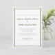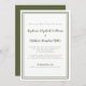 Virtual Wedding livestream Invitation features a simple contemporary minimalist design with a double frame border in olive green on a crisp white background. Traditional wording provides timeless yet modern sophistication. Personalise wedding design with your livestream details in chic olive green lettering and script. The back of the card matches in green.