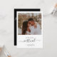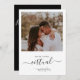 Rustic minimalistic design features modern script , botanical floral leaf with photo, and black colour on back of card. Easily personalise your information of choice. Ideal simple wedding invitation for a virtual online wedding.