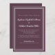 Virtual Wedding livestream Invitation features a simple contemporary minimalist design with a double frame border in white on a solid purple cassis background. Traditional wording provides timeless yet modern sophistication. Personalise wedding design with your livestream details in crisp white lettering and script. The back of the card matches in solid true purple.
