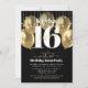 Virtual Sweet 16 Birthday Glam Girly Gold Balloons Invitation