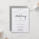 A virtual wedding invitation done in white, silver grey (non-foil) and black with information on how to connect to the wedding online. Simply add your information, add this invite to your cart, and enjoy your online wedding.
