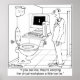 A person in a restroom with just a keyboard and monitor saying, “If you ask me, they’re carrying the virtual workplace a little too far.”