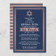 Whether friends and family are practicing social distancing or just live far away, connect with them online with a virtual bat mitzvah ceremony and celebration. This stylish modern invitation includes wording for a long distance online event via internet video conferencing and livestreaming. All text is simple to personalise, so it can include any information regarding the service, Torah reading, and party. Reception wording is easy to customise to a drive-by car parade, back yard party, or other event type. (IMAGE PLACEMENT TIP: A simple way to centre a photo exactly how you want is to crop it before uploading to the Zazzle website.) Design features a pink faux rose gold foil Star of David, navy blue and white stripes, and elegant art deco inspired typography. Mazel Tov!