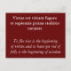 A red postcard with a latin quote in white text and the english translation underneath. "To flee vice is the beginning of virtue and to have got rid of folly is the beginning of wisdom". It's by the Roman poet Horace.
