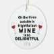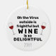 Show some humour during the holidays with this Virus Outside is Frightful Funny Christmas Pun Ceramic Ornament. It is a typography design on both sides with bold black lettering on white background. Two small wine glasses are on each side of text. The funny pun is "oh the virus outside is frightful but wine is so delightful" followed by customised year. Click personalise option and enter year.