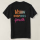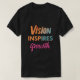 Vision Inspires Growth is a dynamic t-shirt design featuring the phrase in bold, sans-serif letters, set against a vibrant, multi-colour backdrop. The design is visually striking, with a high-contrast colour scheme and a blurred background that adds depth and dimension. This uplifting message is perfect for those who believe in the power of vision and its ability to drive positive change.