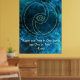 The symbol of the single eye emanates from clarity in its centred position. The geometric lines leave space for visions to arise. The art expressed by the design is a simple to use gazing meditation tool. The space within the geometric lines helps to stay tuned with the guidance of the intuitive inner voice. The art is a magnet for well-being and a everyday life enhancer for home and therapeutic/creative work spaces. Hand drawn and merged in mixed media, printed in lighter gold on blue smoky background.